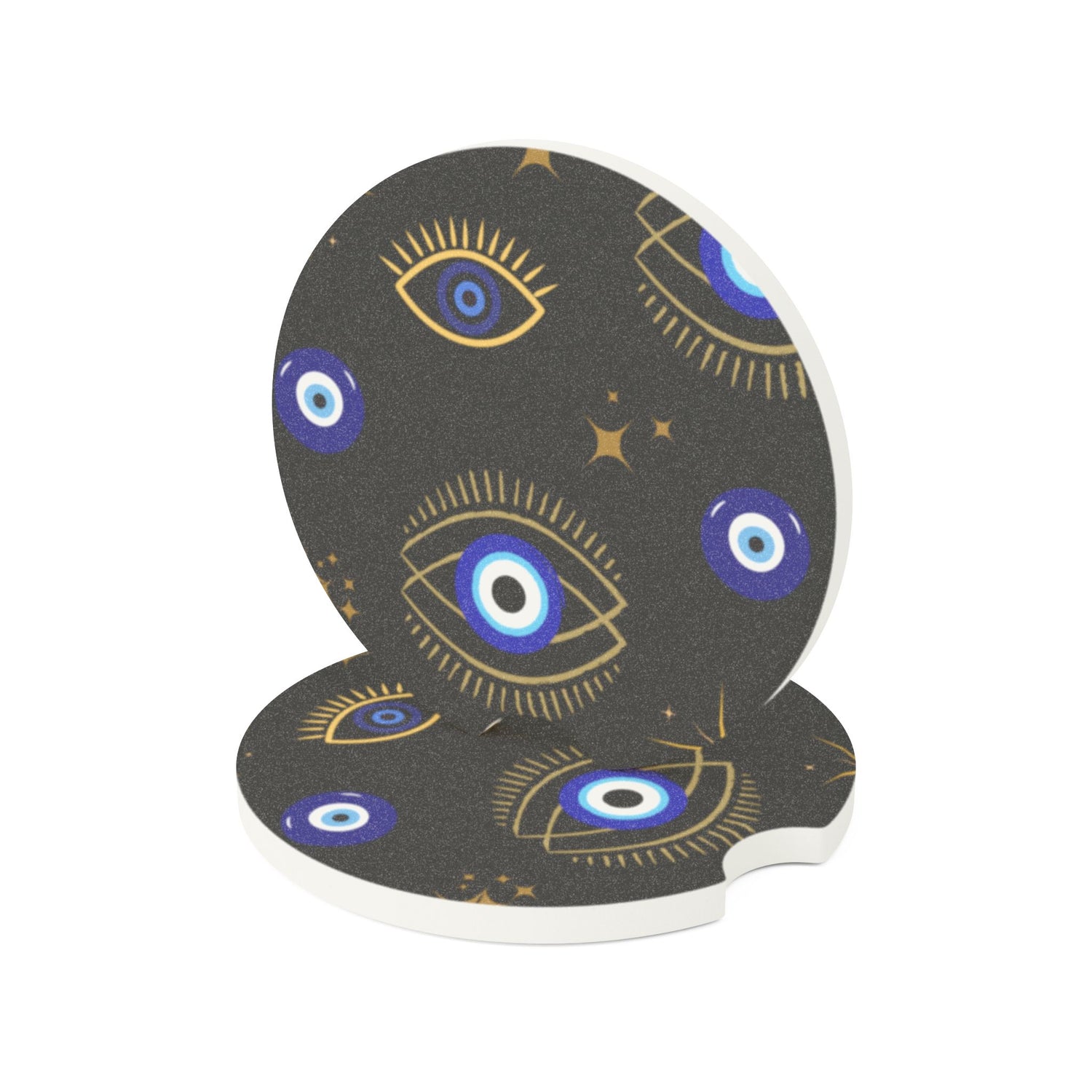 Mystical Evil Eye Soapstone Car Coaster - 2.6'' × 2.6" / 1pc is backordered and will ship as soon as it is back in stock.
