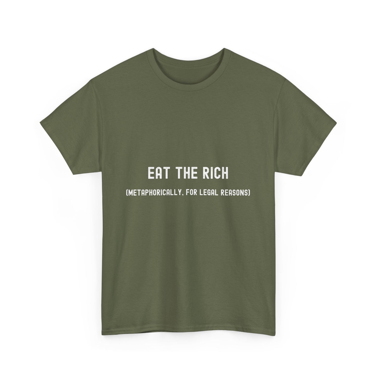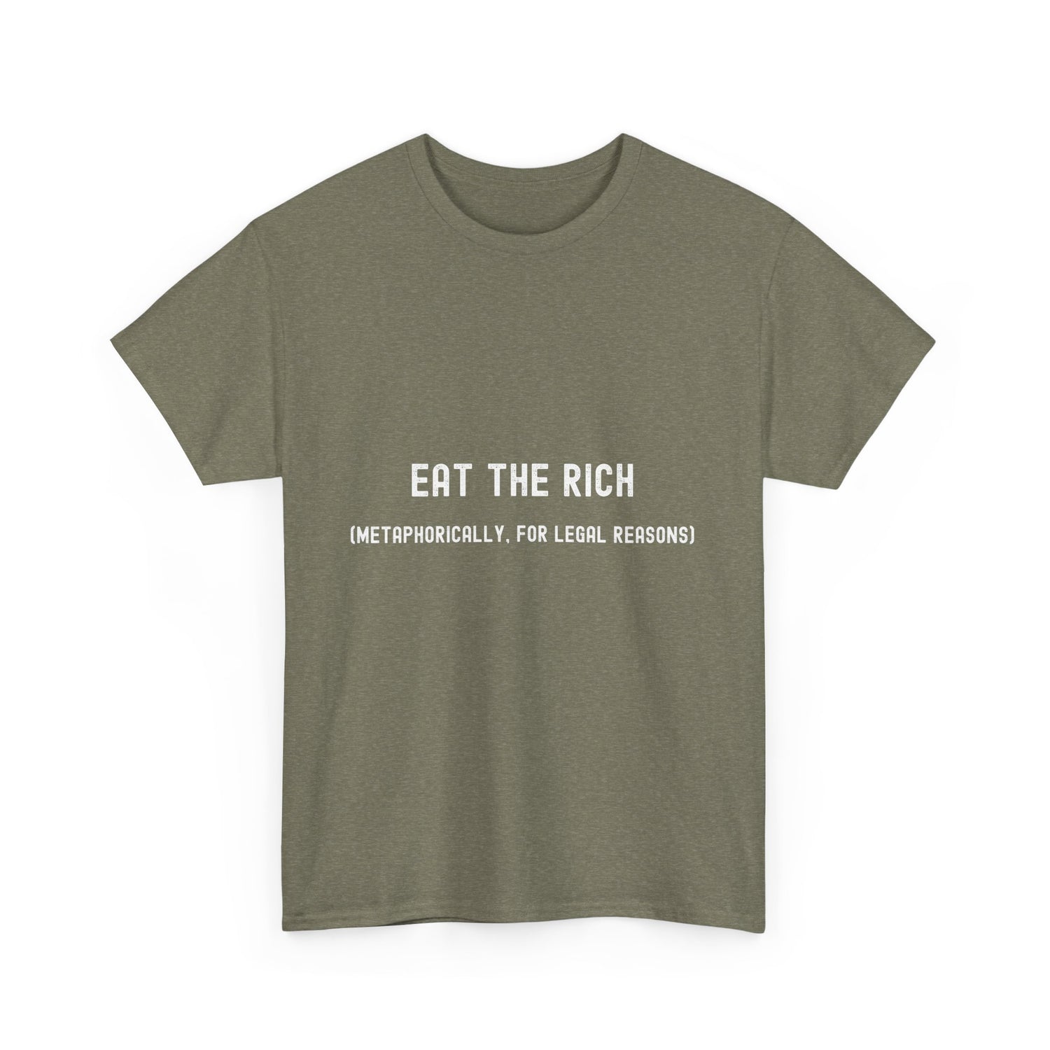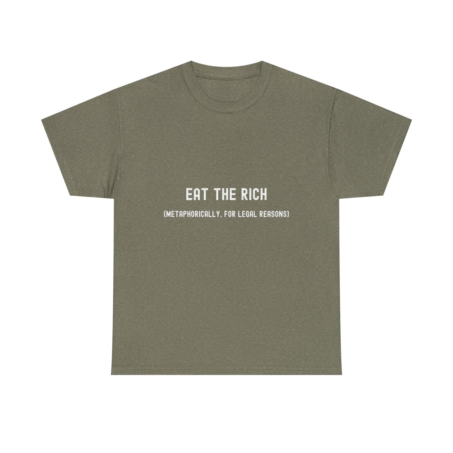 Eat the Rich Unisex Heavy Cotton Tee - Heather Military Green / S is backordered and will ship as soon as it is back in stock.
