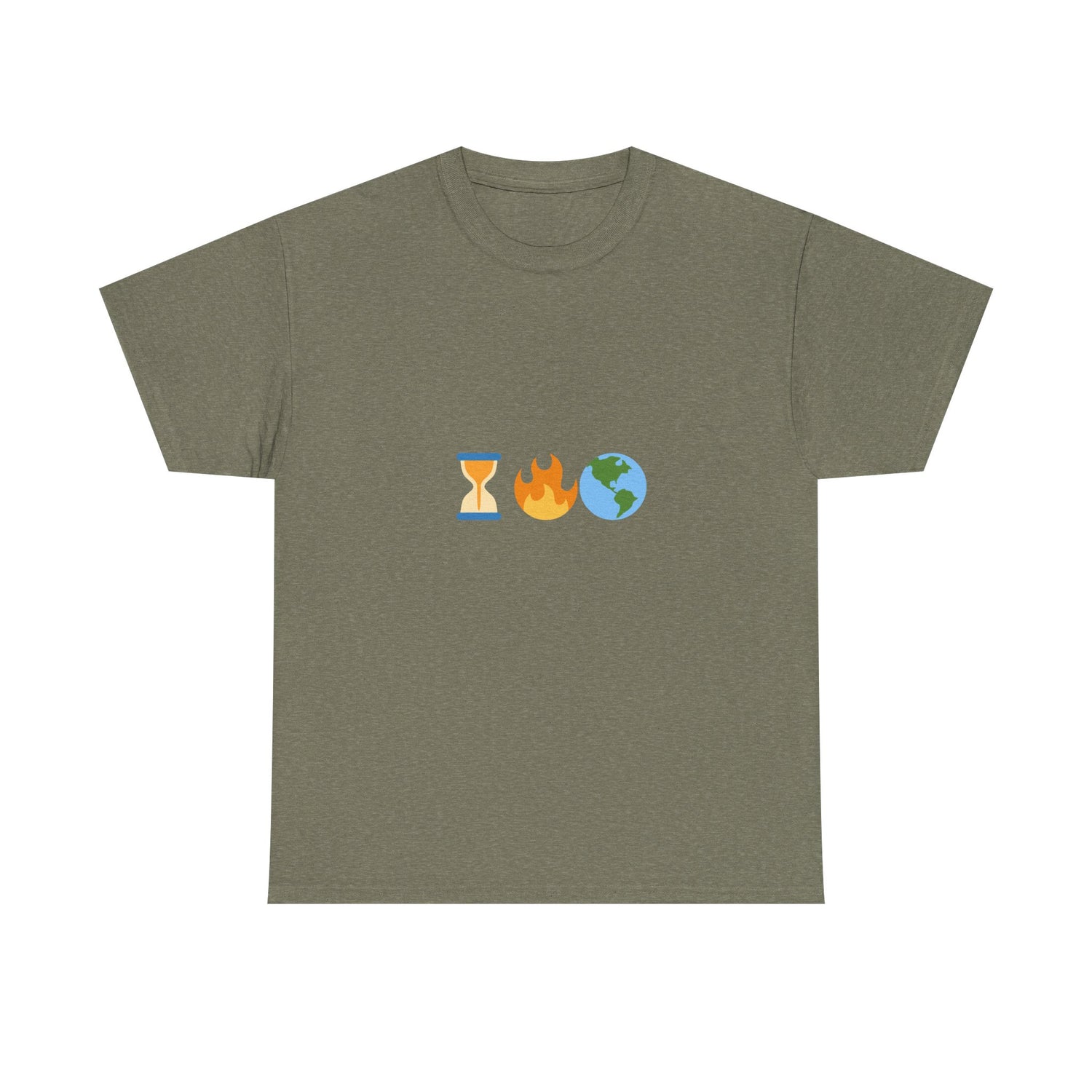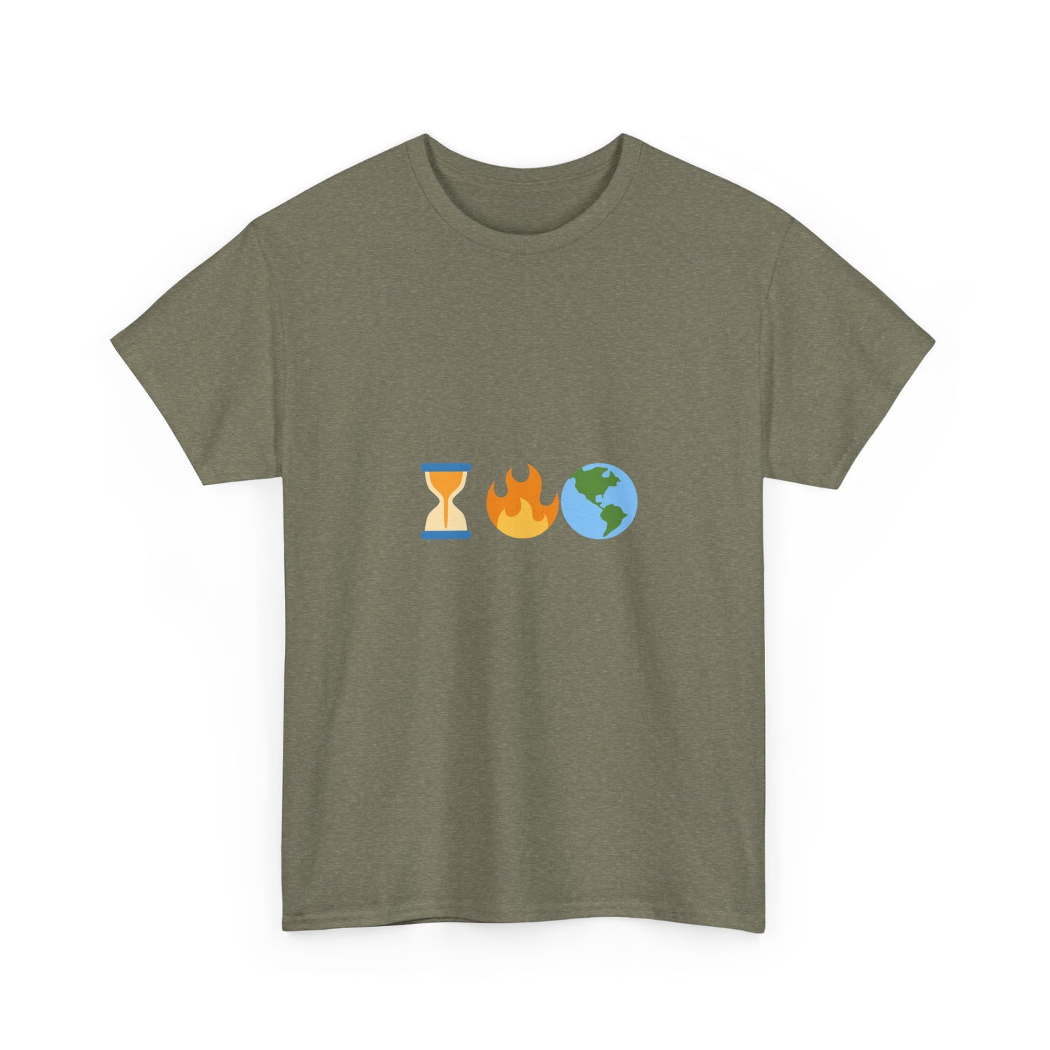Running Out of Time Eco-Conscious Emoji Unisex Heavy Cotton Tee - Heather Military Green / S is backordered and will ship as soon as it is back in stock.